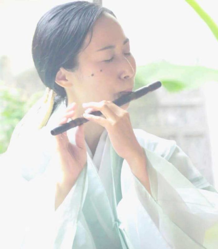 雅楽界の至宝、芝祐靖氏・豊英秋氏の各師に雅楽全般を師事。 自分の軸となる笛を模索していた20代はじめ、芝師の「龍そのもの」のような音色を聴いて、龍笛を吹きたいと雅楽専攻科に進学。 同じ頃、旅先で「求めていた音色」雲龍さん、白龍さんの魂に響くような笛の音に出逢う。 以来、時を超え、空間の器に息を吹き込む響きの探求を続け、多くの人と分かち合いたいと願い活動してきた。